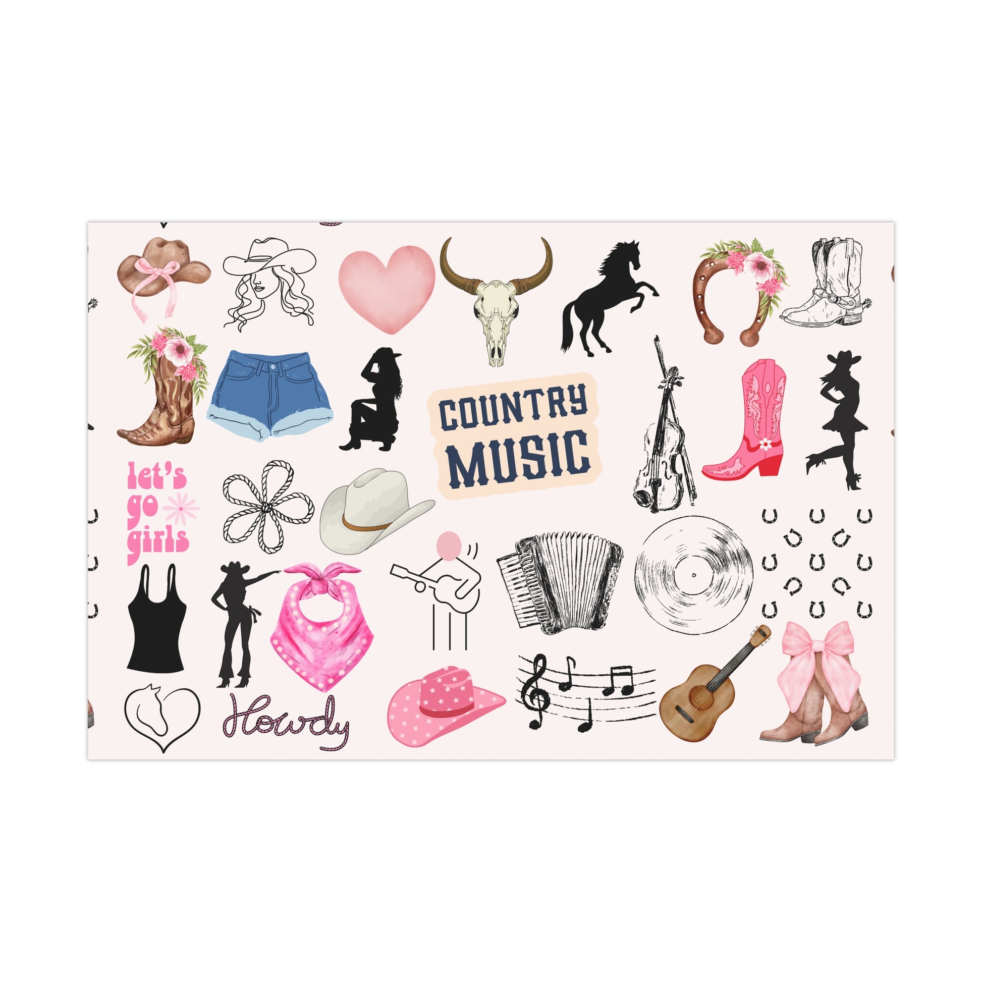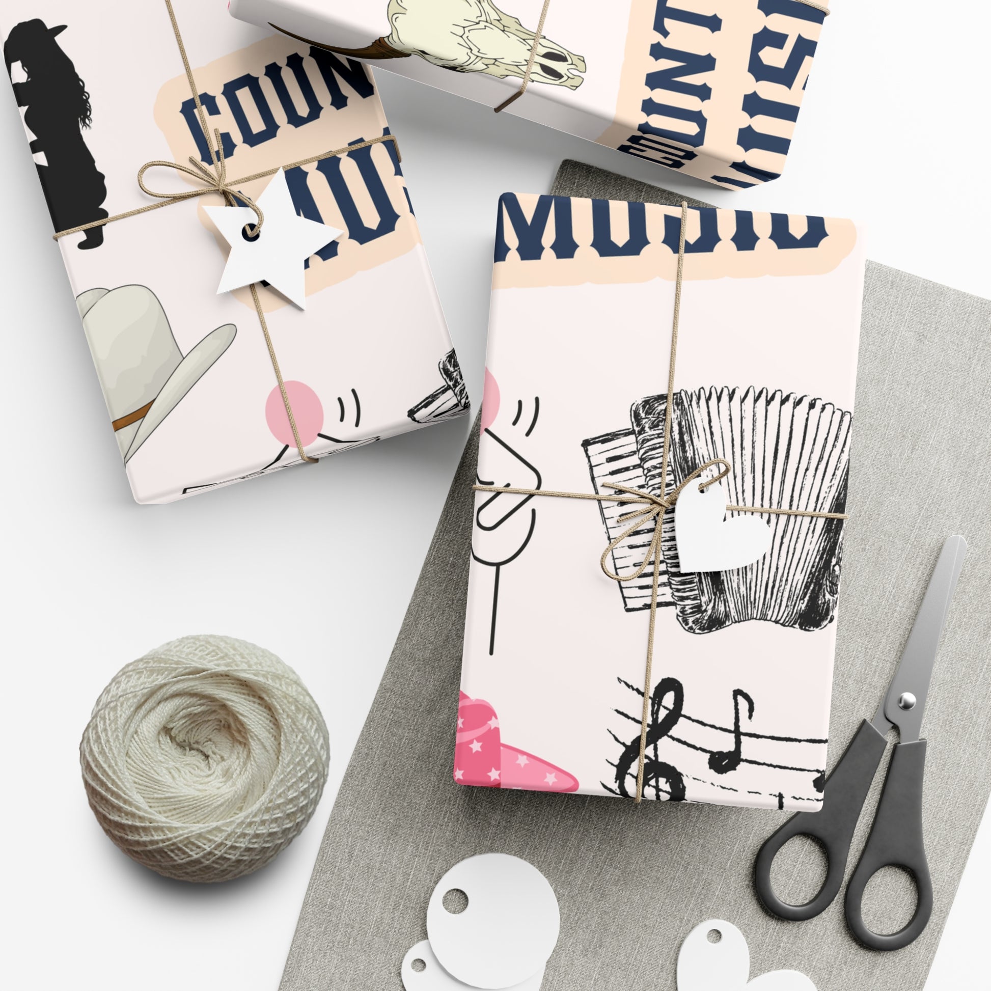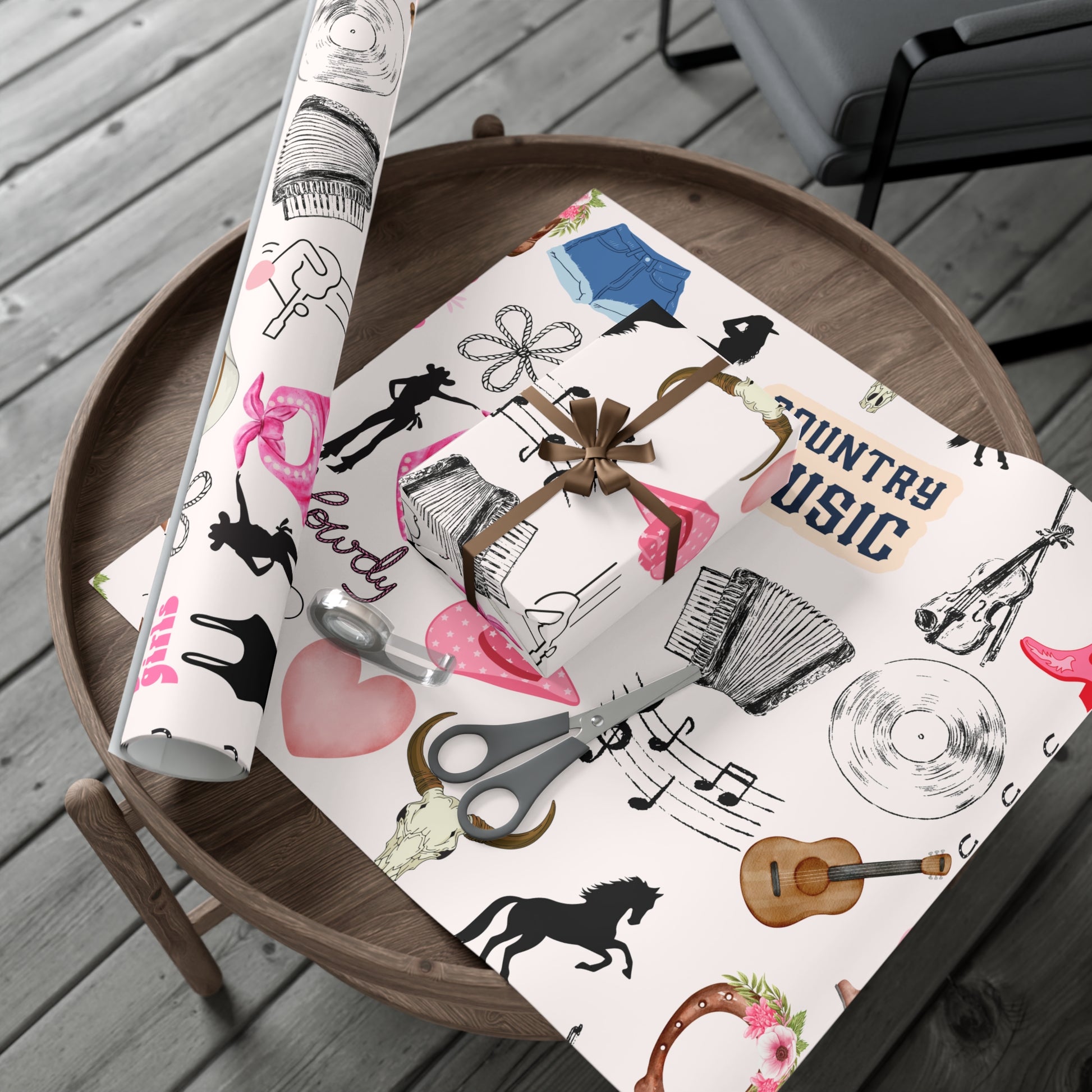 Country Music Gift Wrap Papers, Rustic Wrapping Sheets, Western Themed Gift Wrap, Holiday Packaging, Birthday Decor, Unique Gift [...]