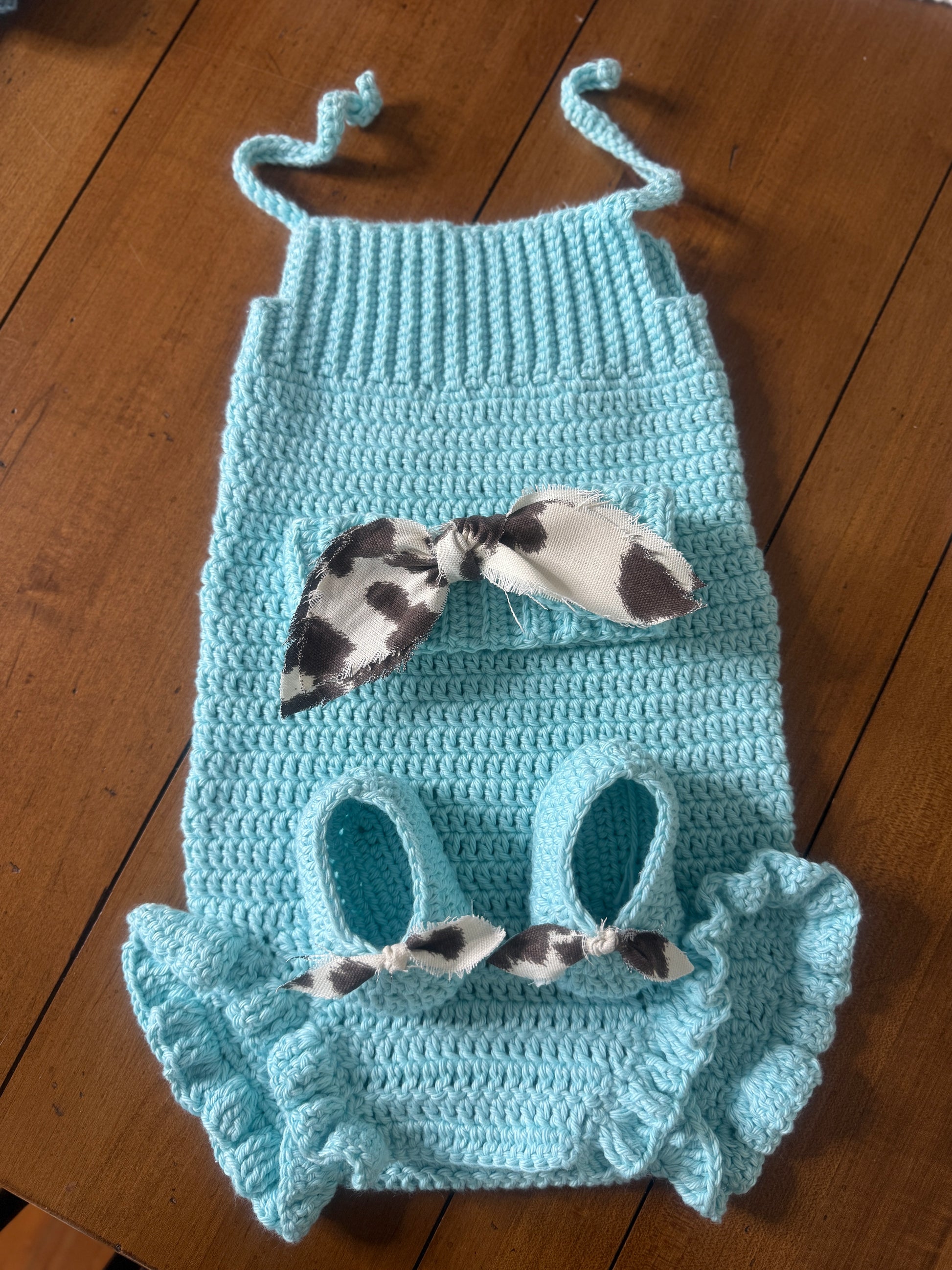 ๐งถ The Handmade Crochet Ruffle Jumper Set is a naturally stylish and charming outfit designed for babies aged 0 to 3 months. Crafted from 100% cotton, this set offers softness and breathability, making it ideal for delicate baby skin. The ruffle jumper features beautifully crocheted ruffles and gentle shaping, creating an elegant and timeless look. Complementing the jumper are cozy, snug-fitting slippers that keep tiny toes warm while adding a touch of style. A coordinating headband with a soft bow completes the set, offering a sweet and polished finishing touch to this adorable ensemble.