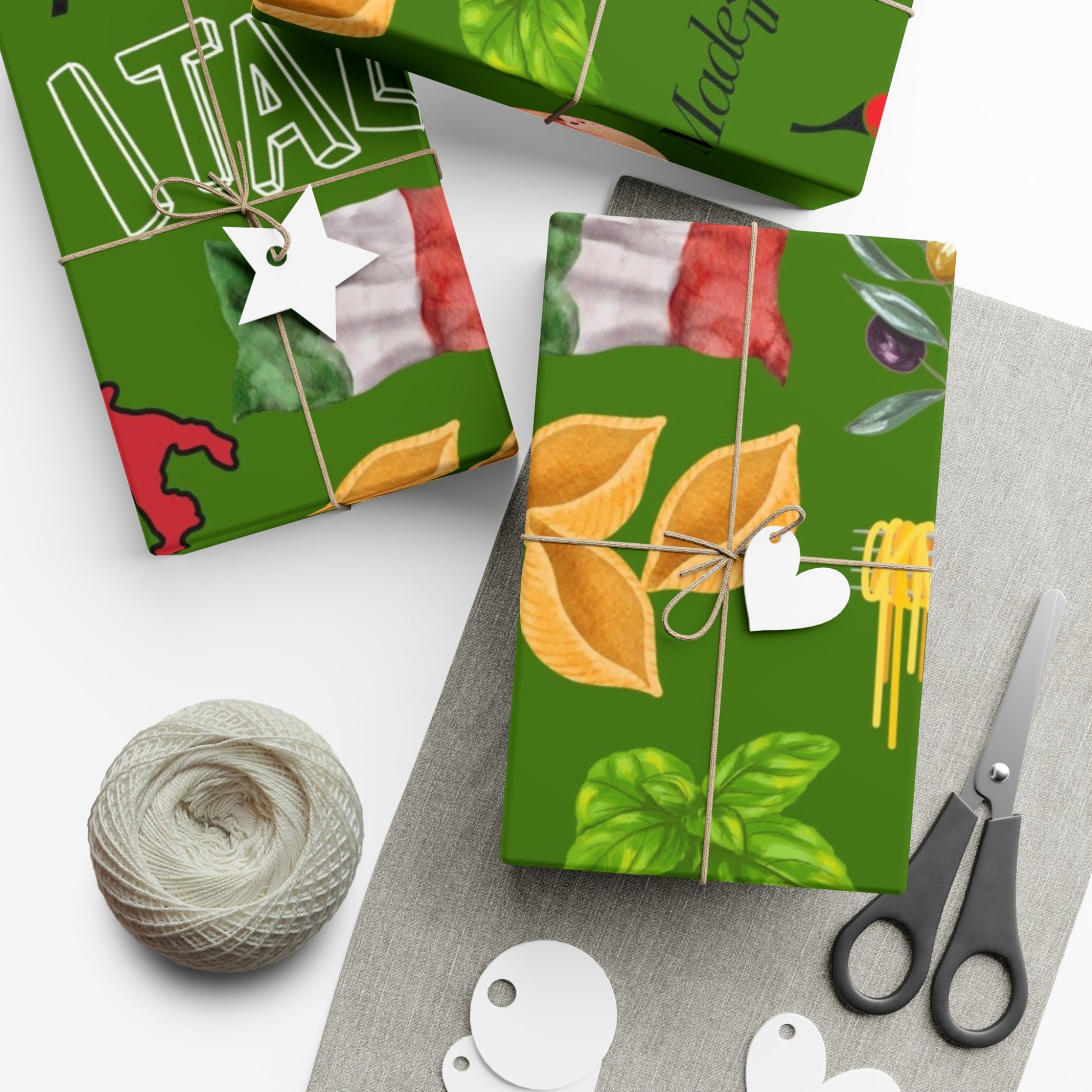 Italian-Themed Gift Wrap Papers, Perfect for Birthdays, Holidays, Weddings, or Any Celebration, Green and Colorful Designs